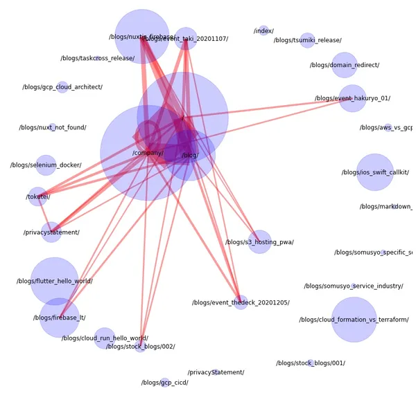 - add_edge:各ページのつながり(線)を追加(線の太さも定義)