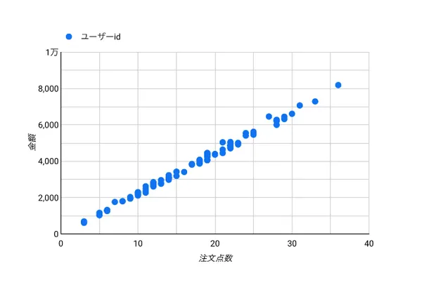 散布図 注文点数、金額ユーザーidなし