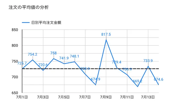 • 棒グラフと平均線:数値の大きさがどのくらい違うか?