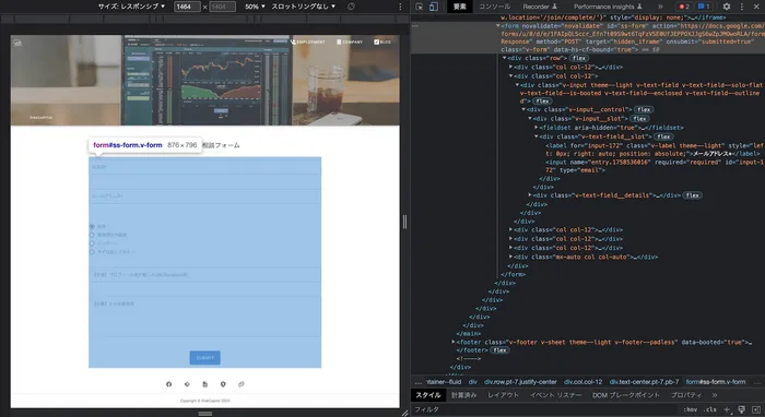 弊社のフォームで言うとGoogleFormを元に作成しているためnameが name="entry.XXXXXXXXX" といった形になっていたため、別途対応するフィールドを以下スクリーンショットの用に作成する必要がありました。