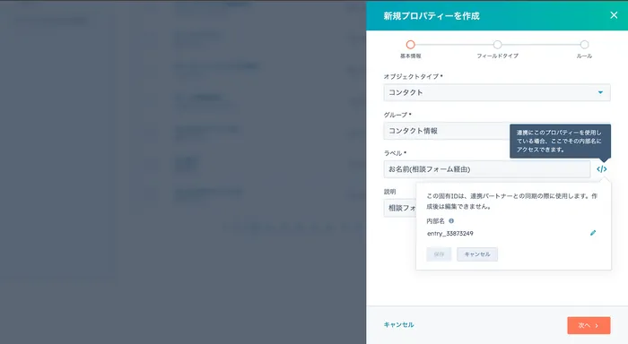 1. field name with contact property internal name