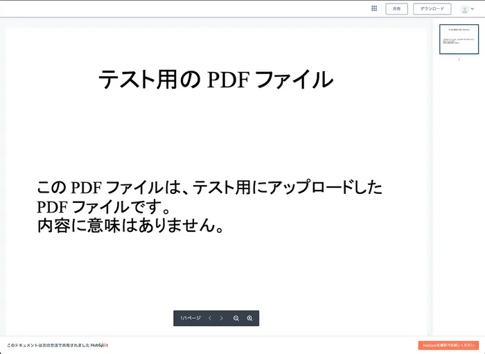 次は会社資料PDF等をメールなどを通じて送付した際のトラッキング方法について見ていこうと思います。Hubspotは自社サイトやフォームをホスティングする機能があるのですが、それと並ぶ形でPDFなどのファイルをホスティングする機能がSalesHubの中に存在します。ヘッダーにおいて「セールス > ドキュメント」と進むことでPDFをアップロードできる画面に映ることができます。