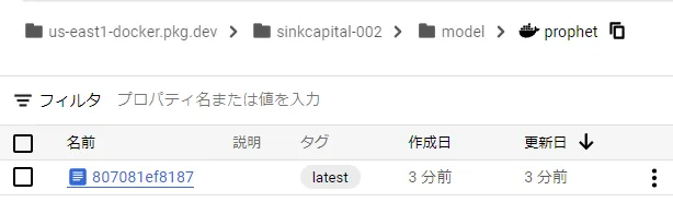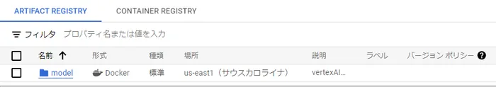 modelフォルダの下で、Artifact Registryにdockerファイルをpushするコマンドを実行します。