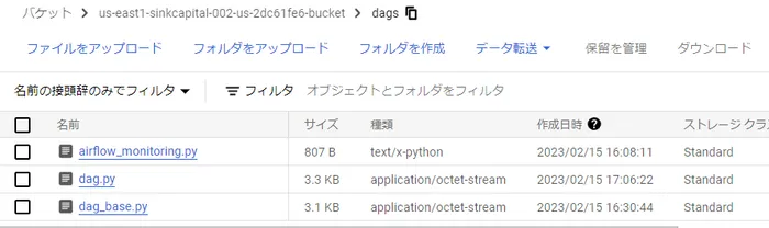 DAGファイルをこちらのGCSにあるDAGフォルダにアップロードします。