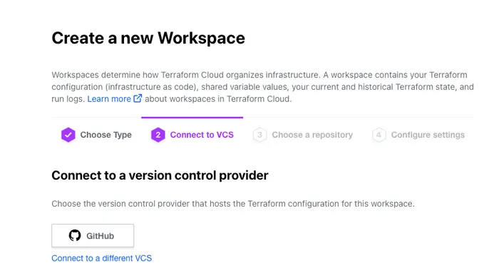 上記で作成したgithubのリポジトリとterraform Cloudのworkspaceをリンクさせます。