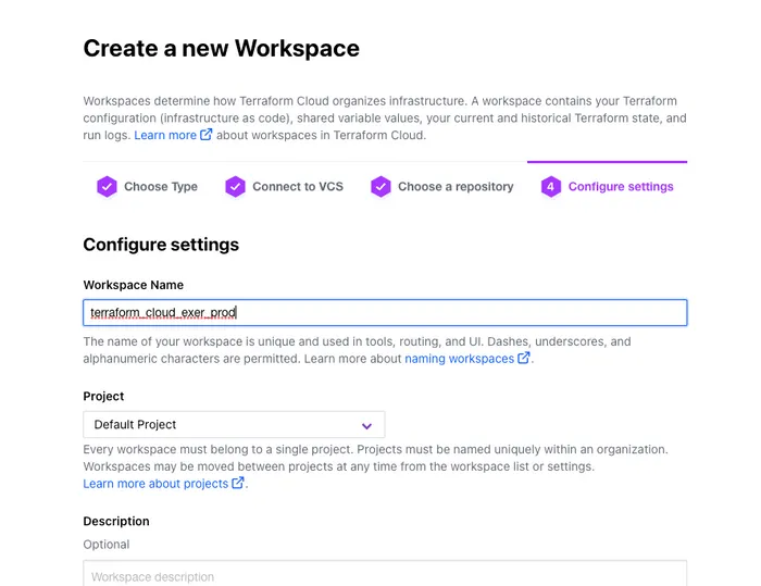 name = "terraform_cloud_exer_prod" #Organizationの中で作成するWorkSpace名を記述